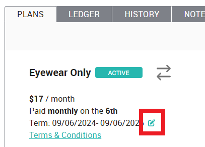 The draw date adjustment tool is located next to the member’s term dates on the platform. It appears as a pencil icon, allowing users to make necessary modifications.