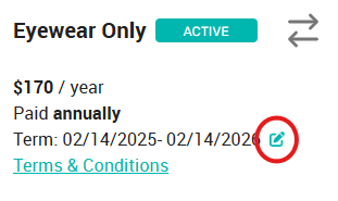 First step is to update the contract dates, by clicking on the tool next to member's term dates in the form of a pencil icon.